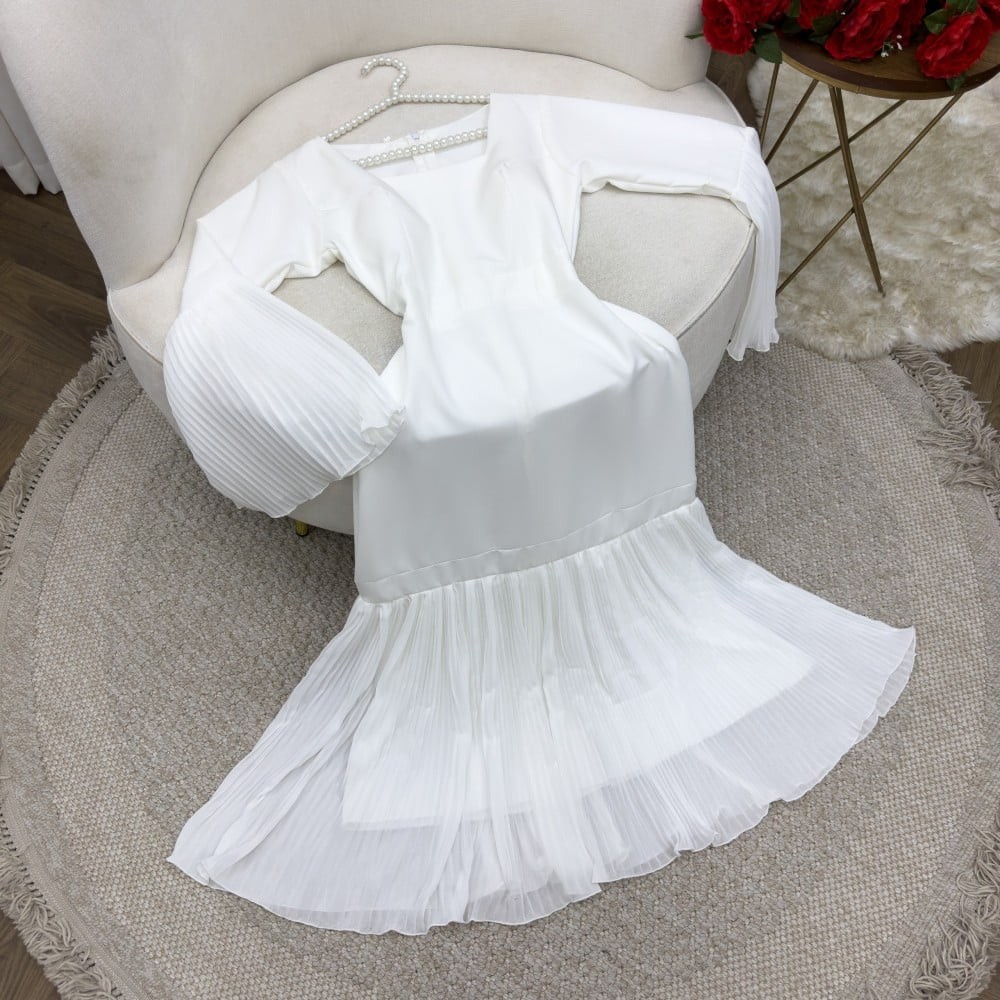 هذا الفستان الميدي الرمضاني الأبيض هو قطعة مثالية لتتألقي بها في مناسبة العيد أو أثناء شهر رمضان المبارك. يتميز هذا الفستان بتصميمه الأنيق والأنثوي الذي يجمع بين البساطة والأناقة في آن واحد.