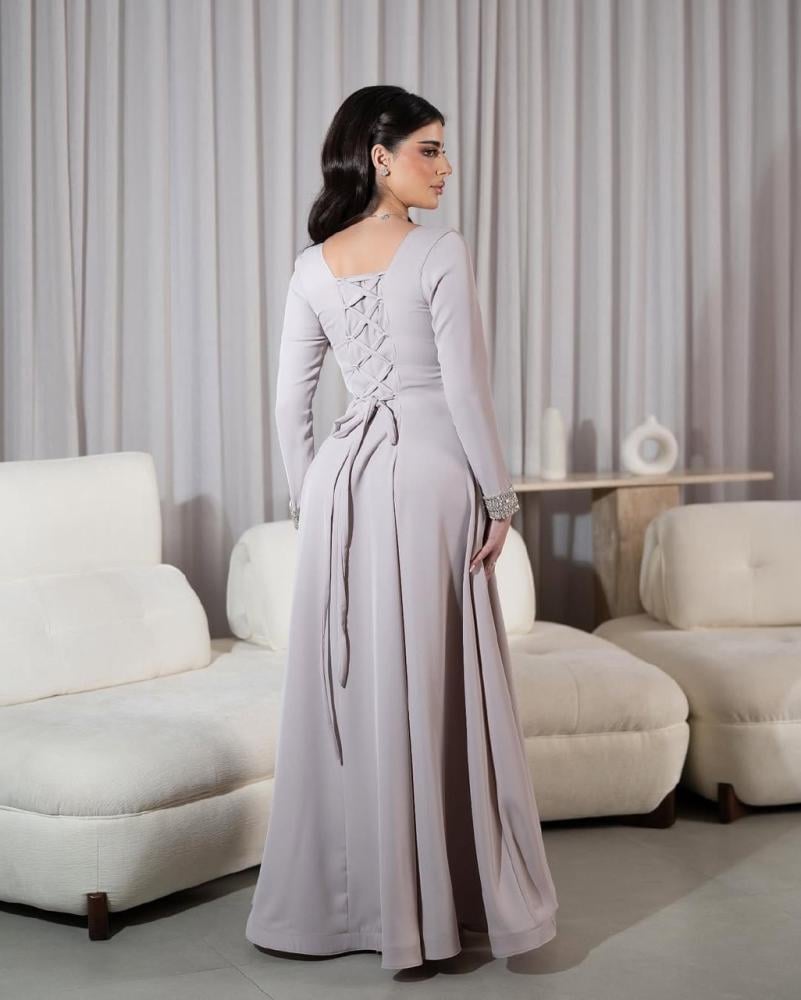 فستان طويل خامة كريب مع شك باطراف الاكمام