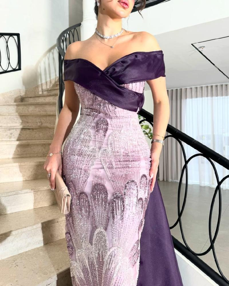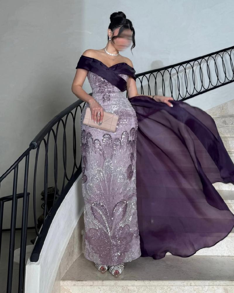 فستان فخم تدرجات الموف خامة شك يدوي