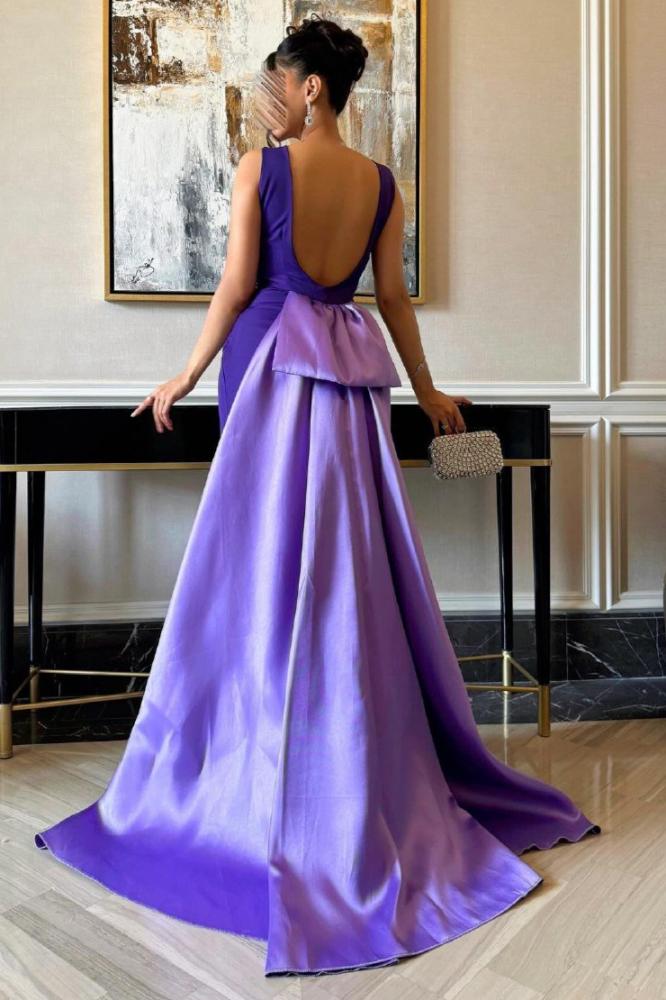 فستان نوره مميز بتصميمه الأنيق والأنثوي، مصنوع من قماش عالي الجودة بلون موف الجميل الذي يضفي على القطعة لمسة من الأناقة والجمال. يتميز الفستان بشال طويل ينسدل من الخلف مما يضفي عليه لمسة من الأناقة والرقي.