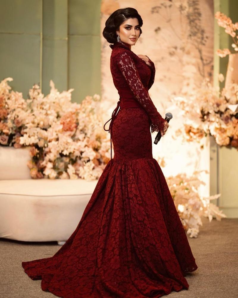 هذا الفستان هو قطعة فريدة من نوعها تجمع بين الأناقة والجمال. يتميز هذا الفستان بلونه الخمري الرائع الذي يعكس أنوثة وأناقة الحاضرة. مصنوعة من قماش الدانتيل الفاخر، يضفي هذا الفستان لمسة رومانسية وجذابة على الإطلالة.
