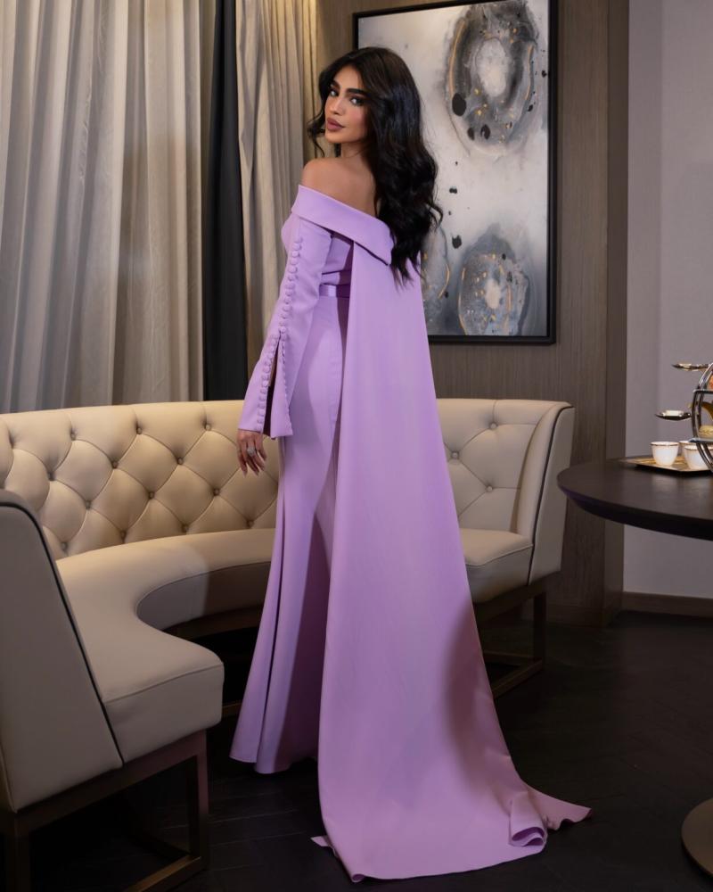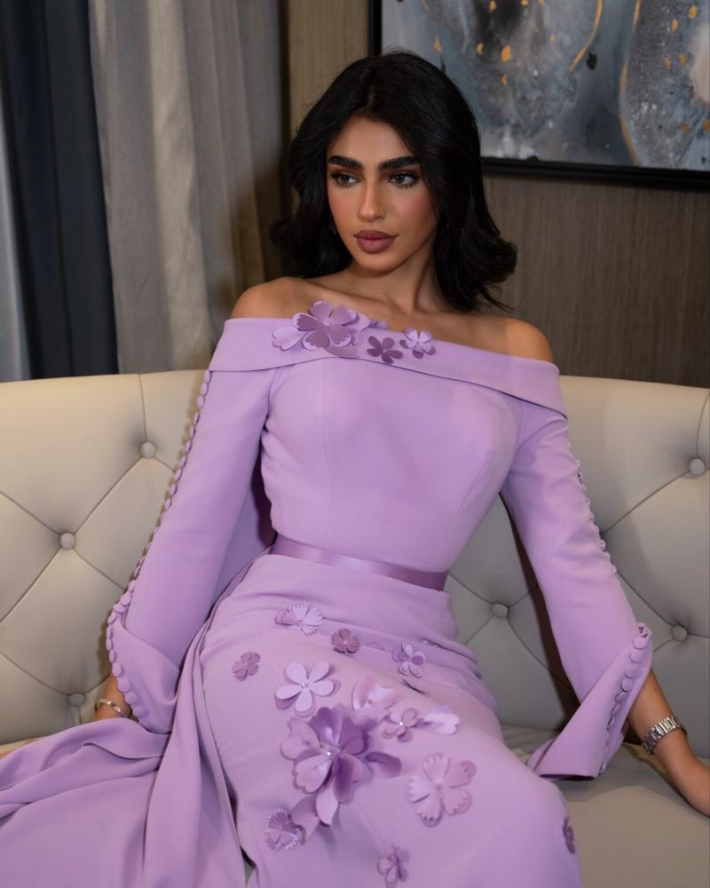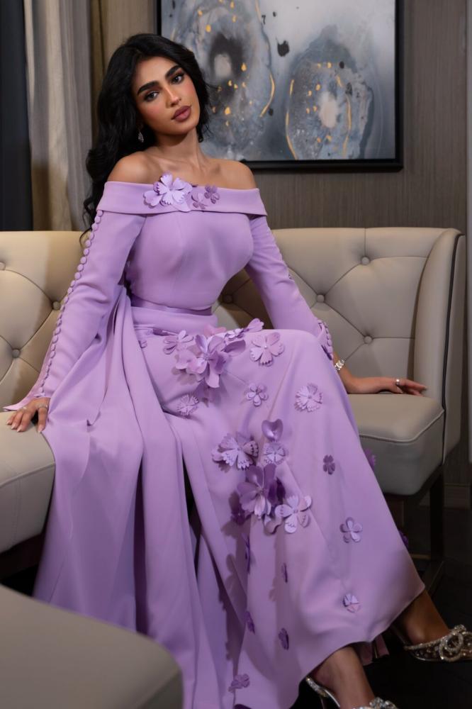 فستان موف خامة باربي مزين بورود و ازرار انيقة