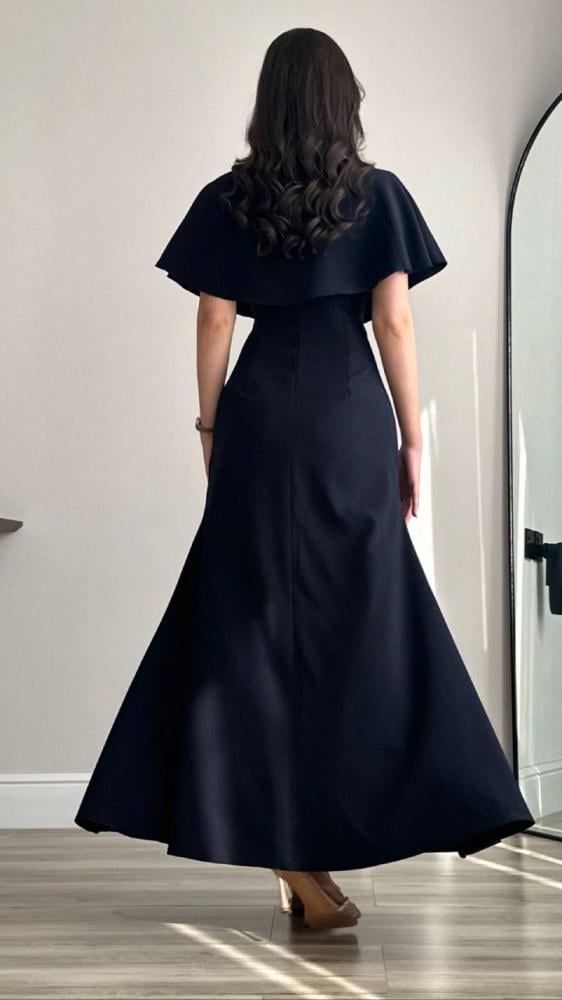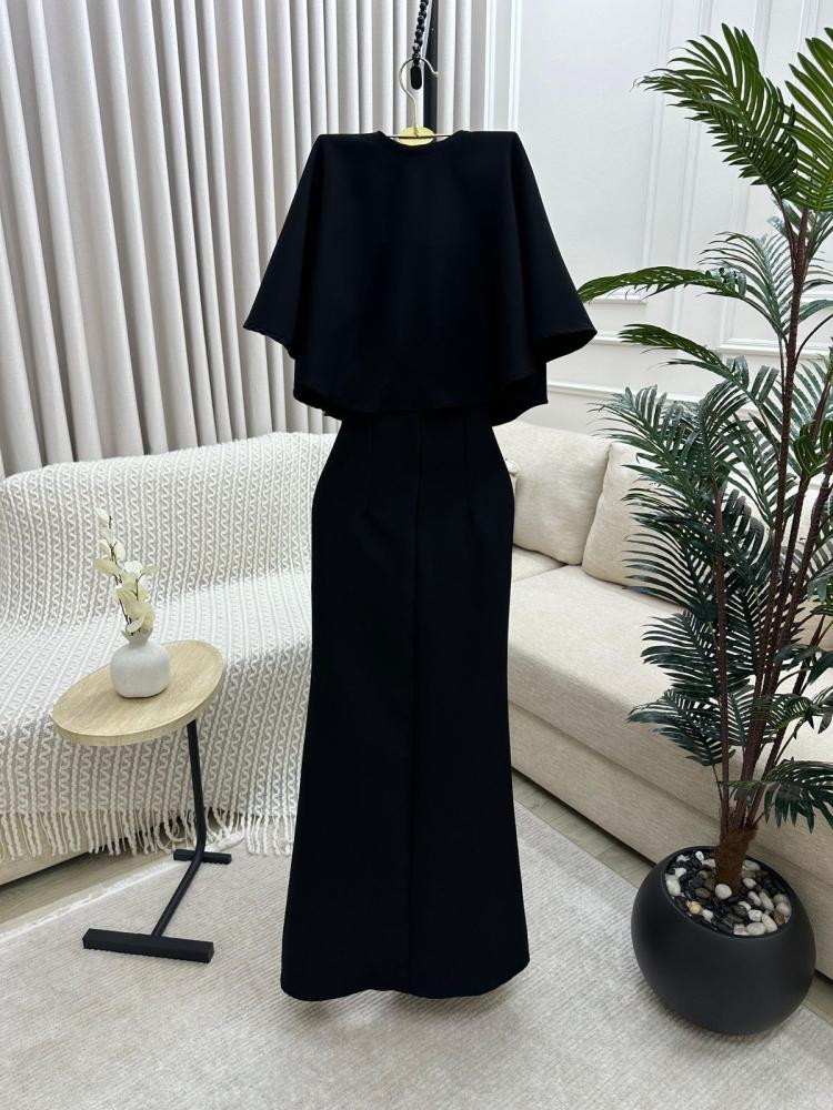 فستان اسود قطعتين خامة باربي باضافة ورود