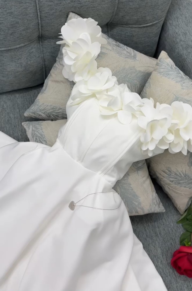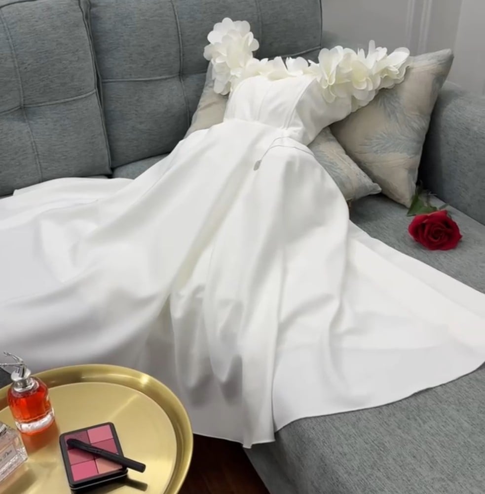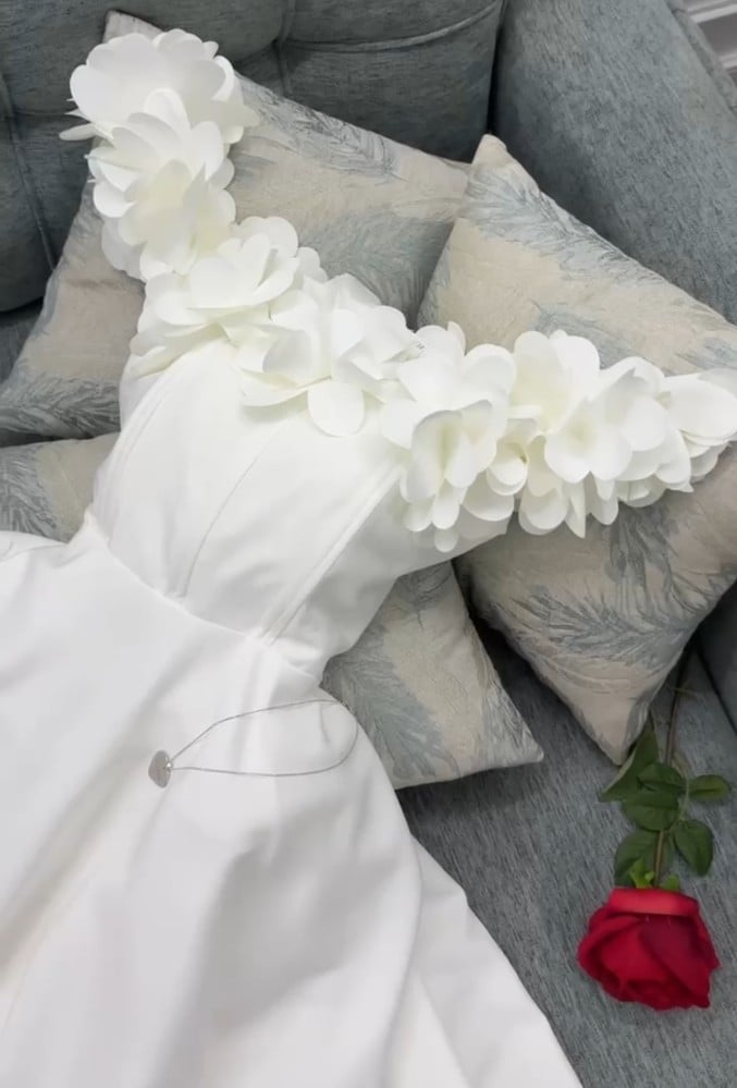 فستان ميدي ناعم ومورد بلون أبيض رائع يتميز بتصميمه الأنيق والعصري. يأتي هذا الفستان بطول يصل إلى تحت الركبة مما يجعله مثالياً للارتداء في المناسبات أو الحفلات الخاصة.