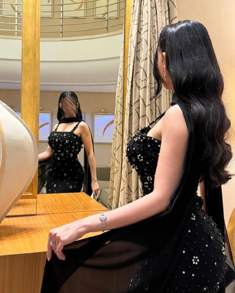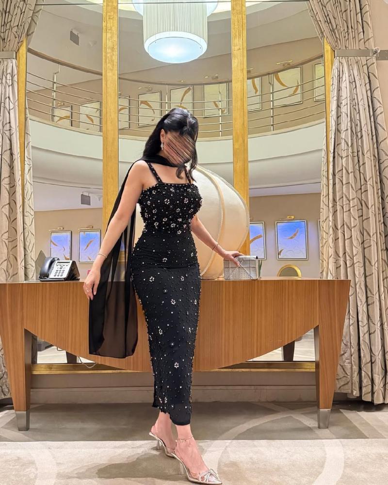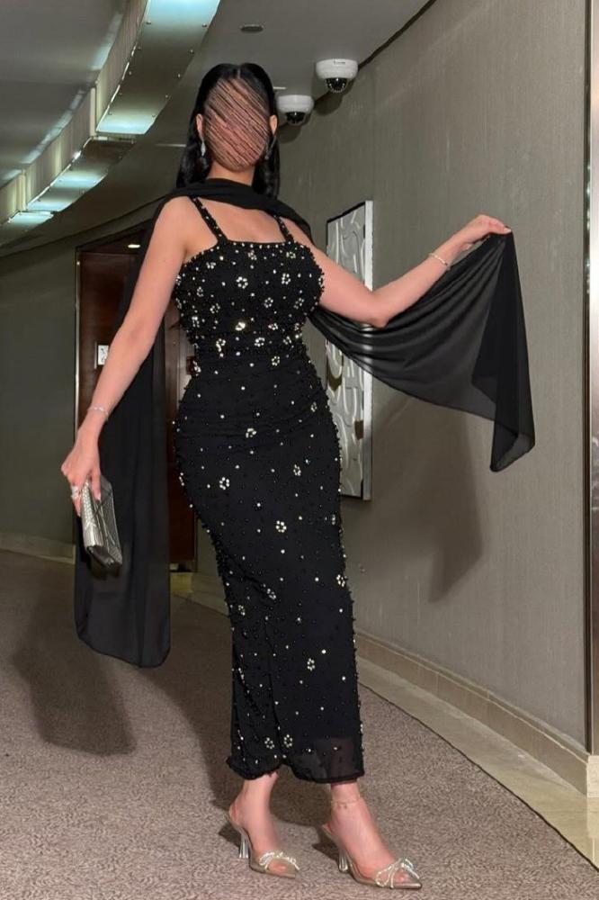 فستان سهرة اسود خامة باربي مع شال شيفون
