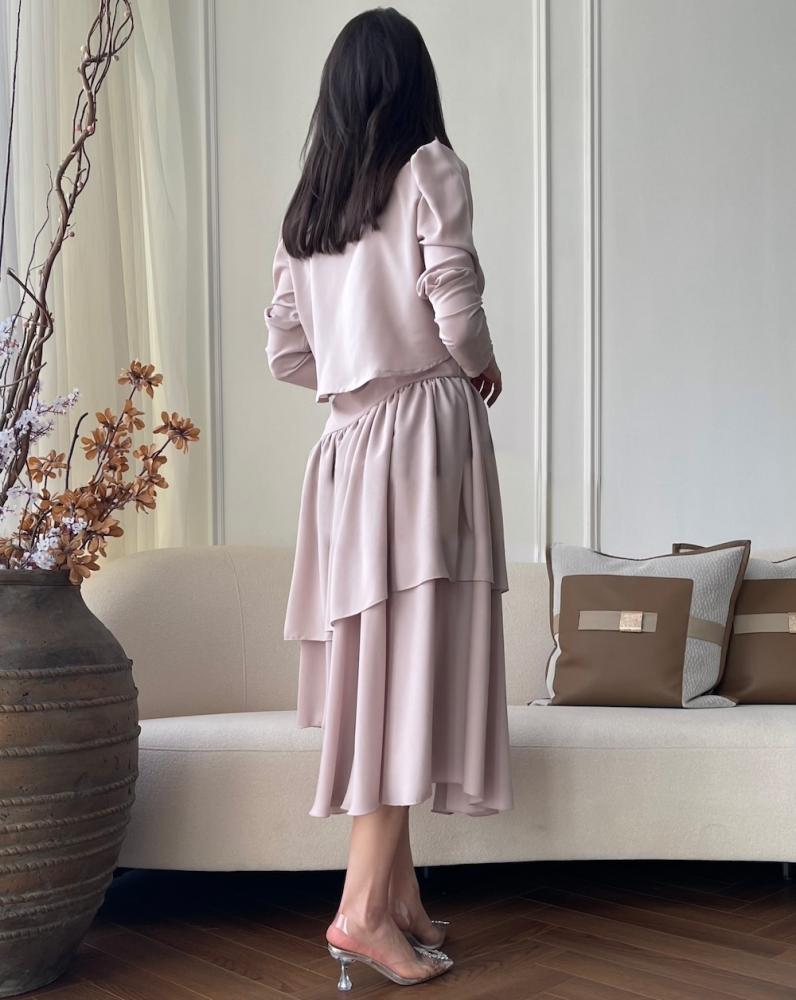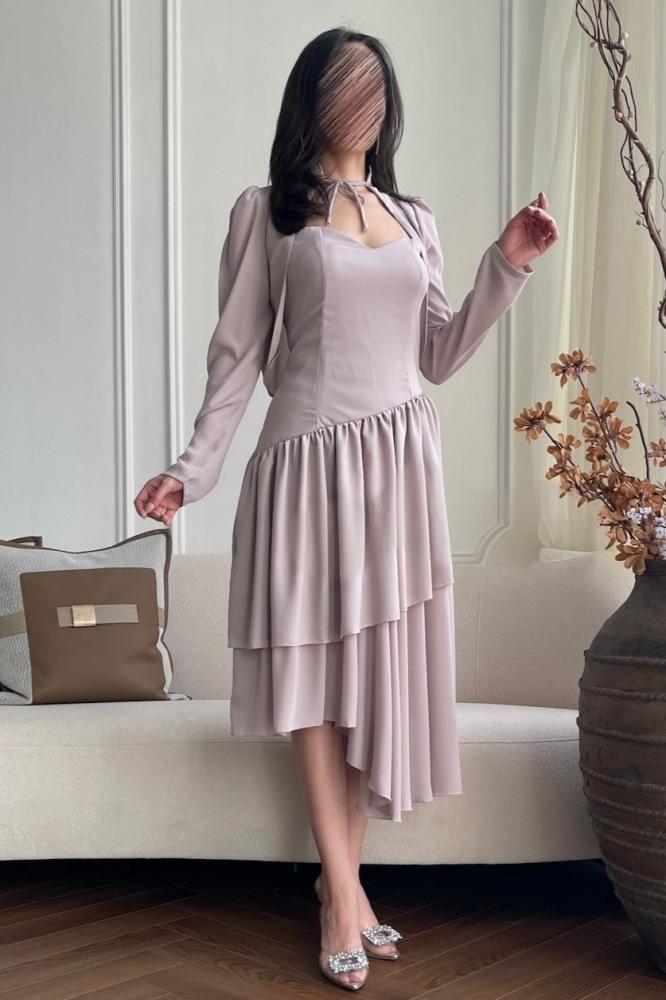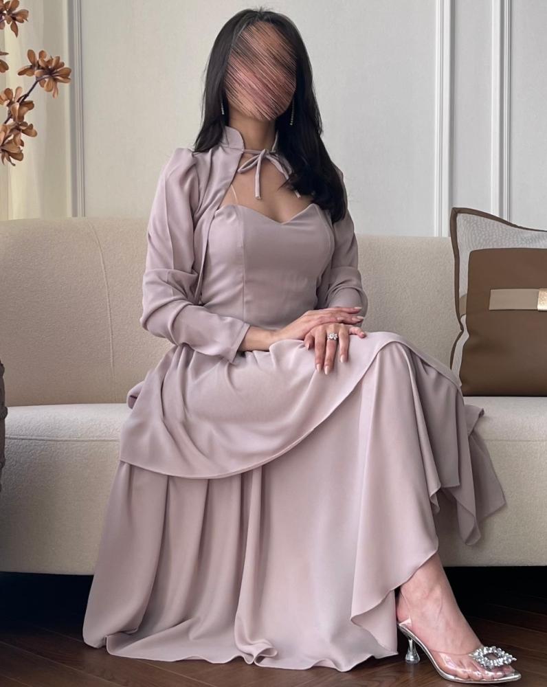 فستان لحمي قطعتين خامة شيفون
