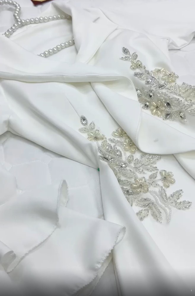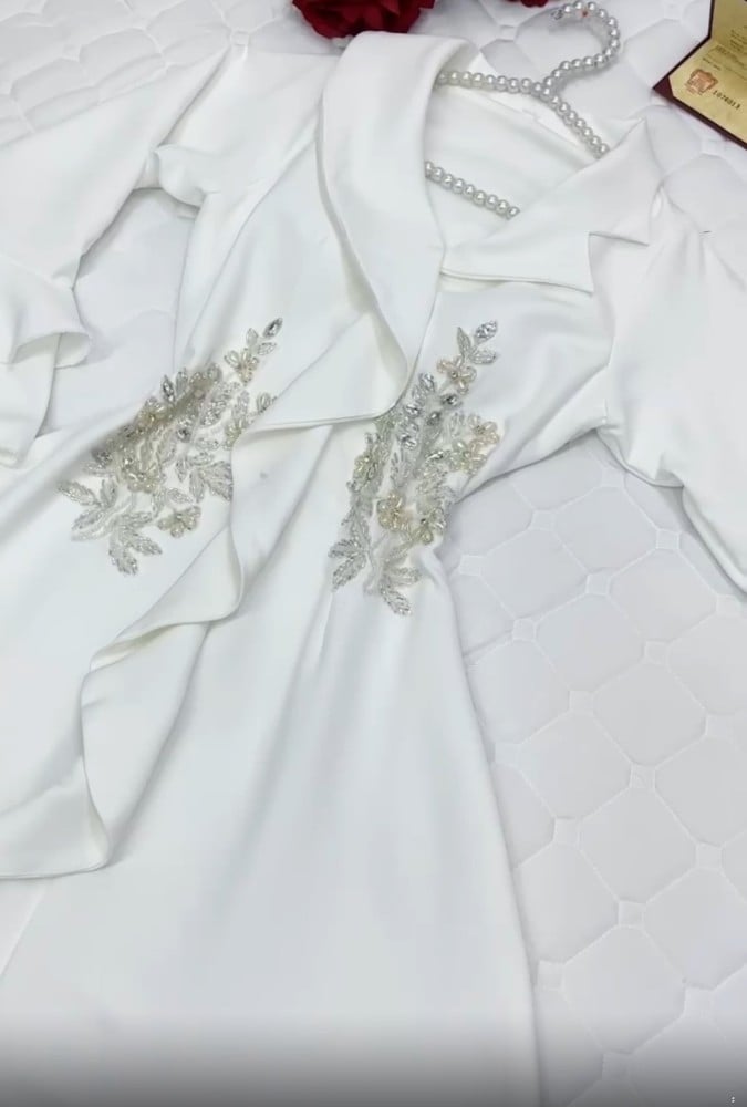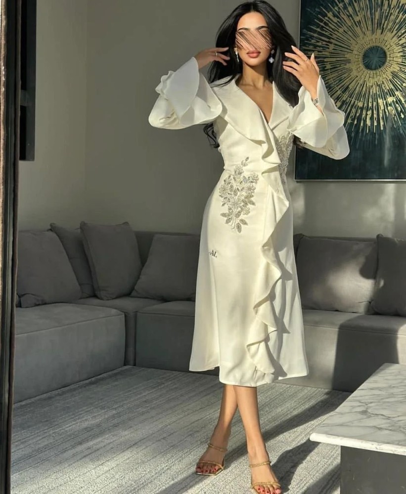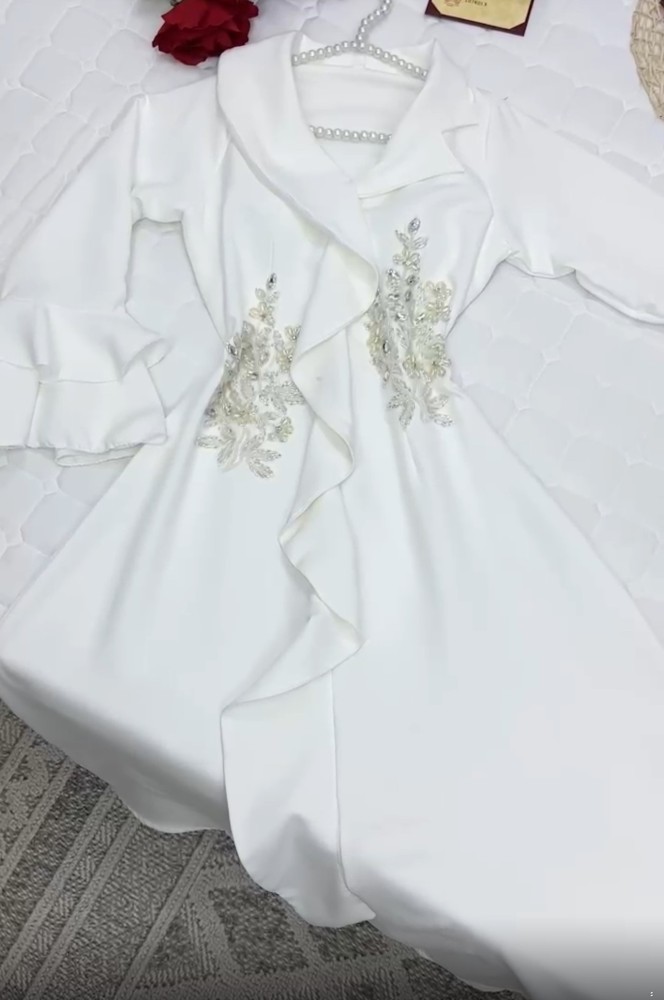 فستان ميدي ناعم وأنيق مثالي لتتألقي به في شهر رمضان وأيام العيد. يأتي هذا الفستان بتصميم مميز وموديل جذاب، يتميز الفستان بلون أبيض مائل للسكري الذي يضفي عليه مظهرًا أنيقًا وجذابًا. كما أنه مزين بتطريزات راقية ودقيقة تضفي لمسة من الفخامة والتميز على القطعة.