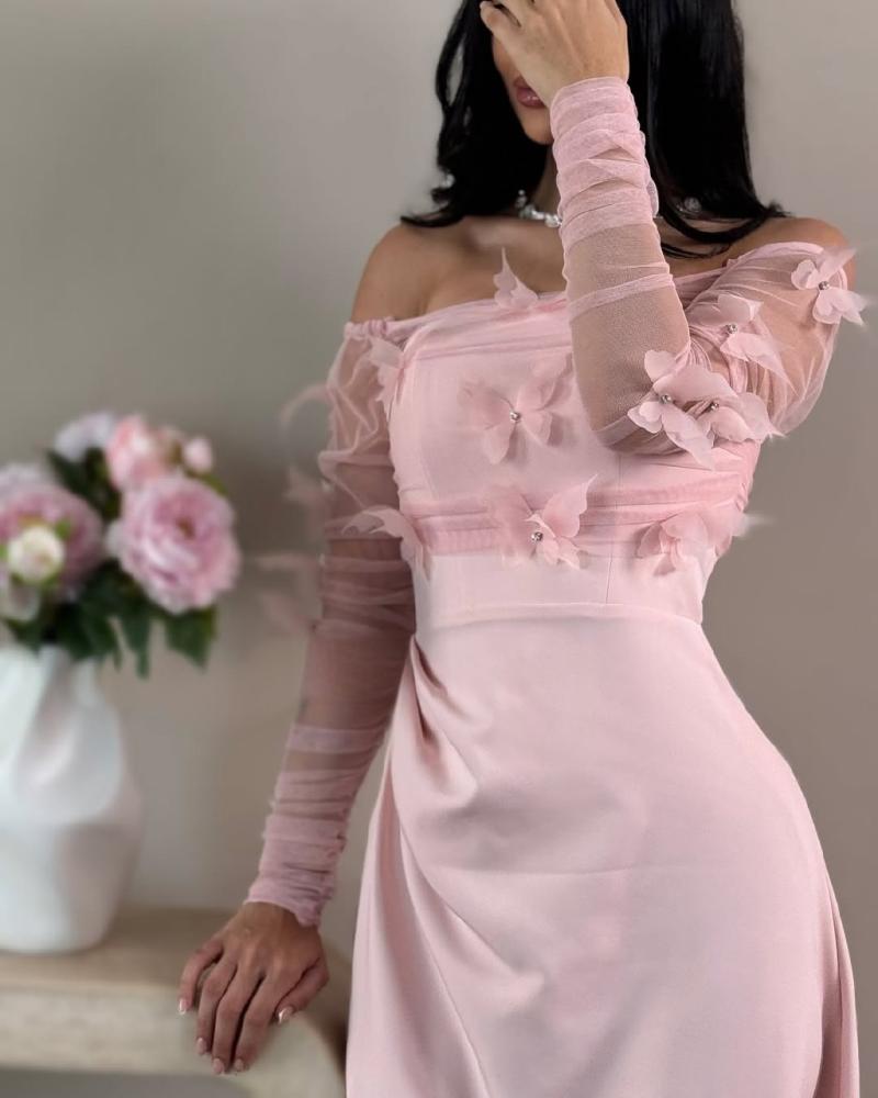 فستان وردي ناعم خامة باربي مع تُل مزين بفراشات