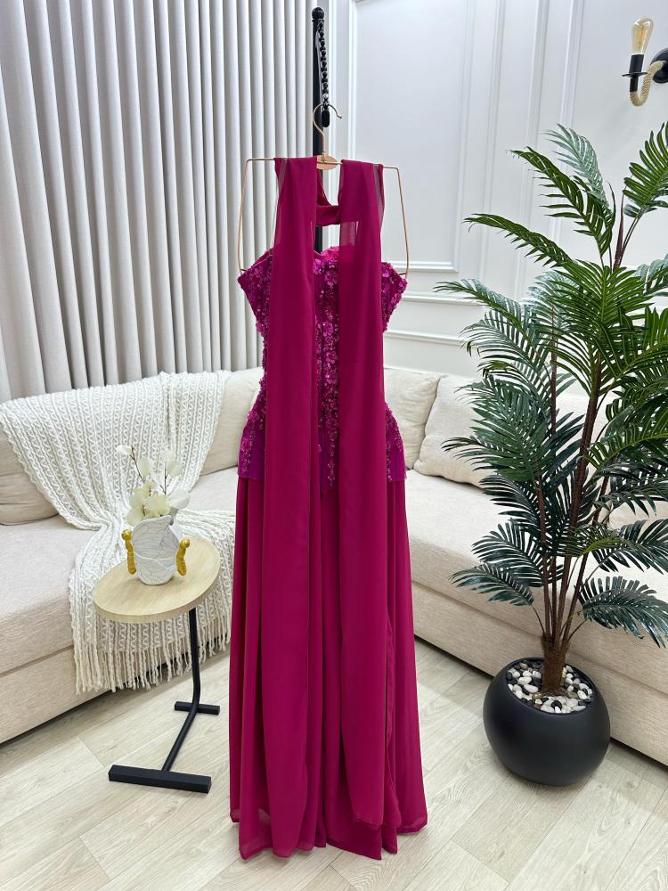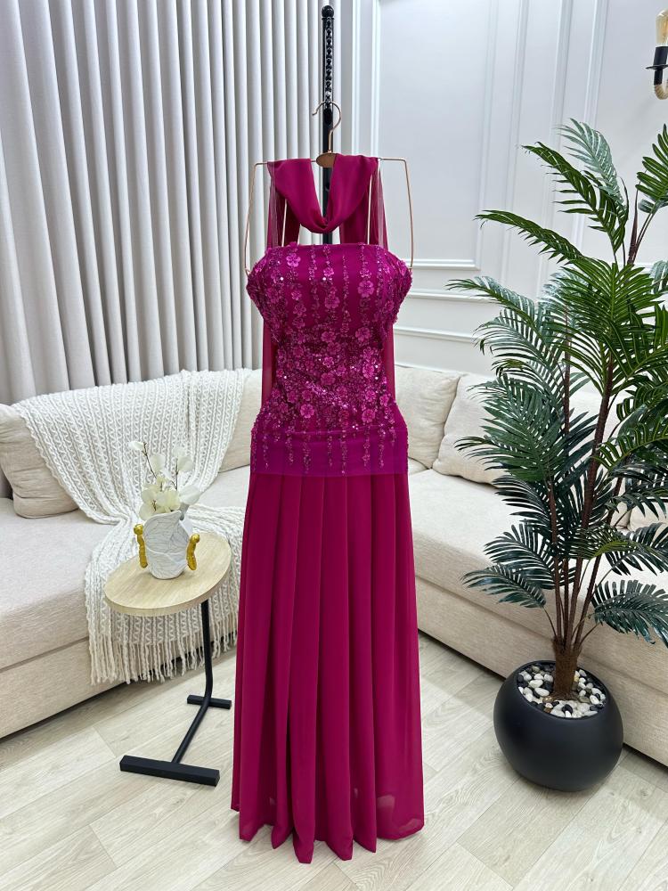 فستان فوشي خامة شيفون صدر باربي تطريز راقي