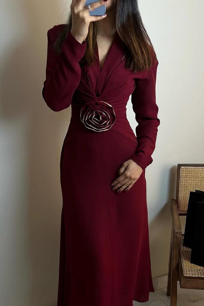 فستان برغندي ناعم خامة باربي
