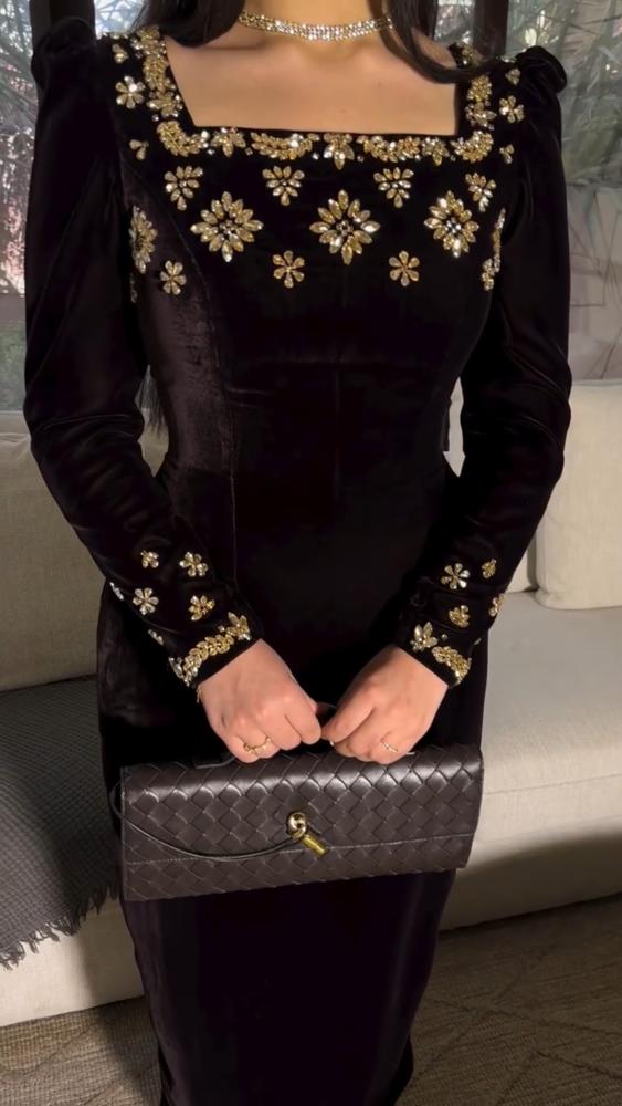 فستان طويل خامة مخمل