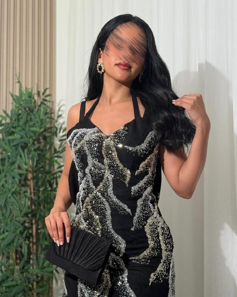 فستان اسود مطرز فاخر