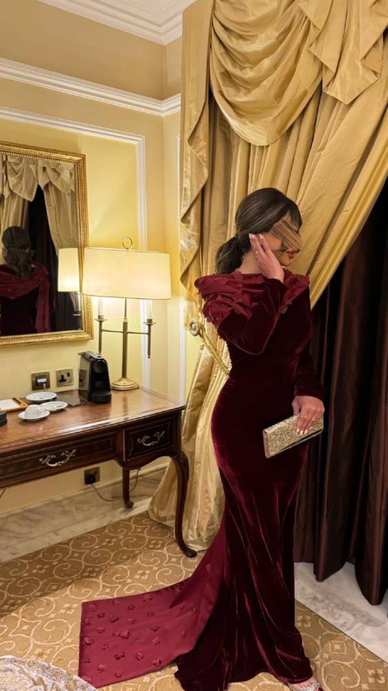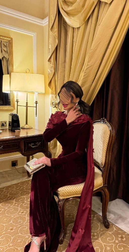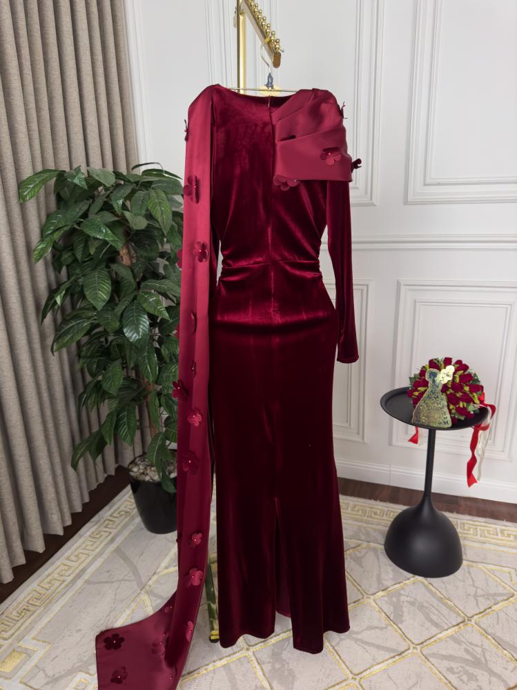 فستان طويل خمري مع شال اضافي